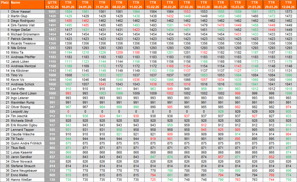 QTTR/TTR-Werte Hinrunde 2025/2026 [Stand 08.12.2025]